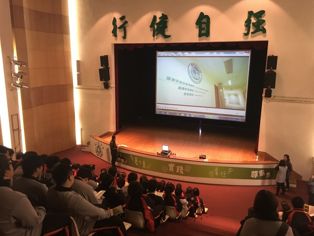 澳門城市大學招生事務處同仁與學院老師一行赴中葡職業技術學校進行2017-2018學年學士學位招生宣講。說明會著重介紹大學的最新發展動態和各個學士學位課程的國外交流計劃、實習計劃和就業前景,讓同學們能更直觀的接收到相關專業課程的資訊。